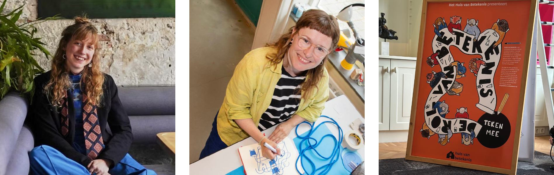 Het Huis van Betekenis is een artistieke gemeenschap die zich richt op illustratie, grafisch ontwerp en maatschappelijke projecten. Het is een verzamelgebouw van creatieve geesten die zowel gezamenlijk als individueel werken. Zij tekenden eerder al de duurzaamheid van de kunstsector op rollen. Meer informatie vind je op huisvanbetekenis.org.